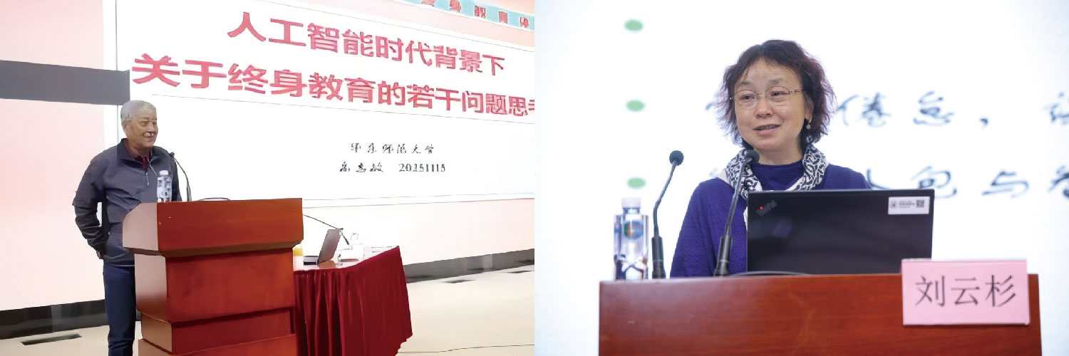 ▲上海开放大学副校长郑益慧教授、华东师范大学祝智庭教授作主旨演讲